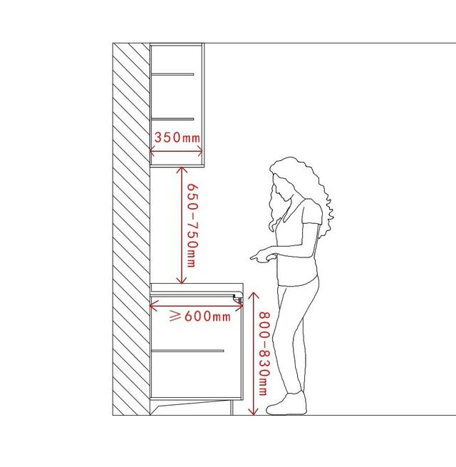 6.8.3 茶水柜臺的標(biāo)準(zhǔn)尺寸:臺面宜大于或等于0.6m,臺面到地面的高度0.8~0.85m,臺面距離上方存放柜0.65m~0.75m,上存放柜的寬度0.35m。