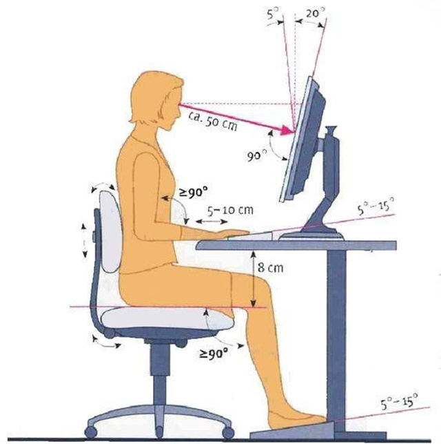 6.3.3 辦公椅應(yīng)選用帶靠背和雙邊扶手的轉(zhuǎn)椅,且辦公轉(zhuǎn)椅的靠背和坐墊高度可上下調(diào)節(jié),適合不同身高的員工使用。 椅子高度為0.38m~0.45m。