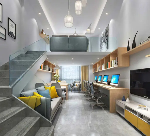 設(shè)計裝飾成公寓式辦公室的大多是商住樓和辦公公寓建筑,區(qū)別公寓式辦公室最大的特點就是除了日常辦公,其間還兼具有盥洗、寢室、日常生活等功能,即白天辦公,晚上休息的辦公住房一體的雙重功能空間。